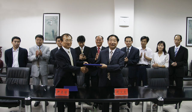 随后的签约仪式上,校长剧乂文和全北大学工学院院长尹正模共同在两校合作协议书上签字。