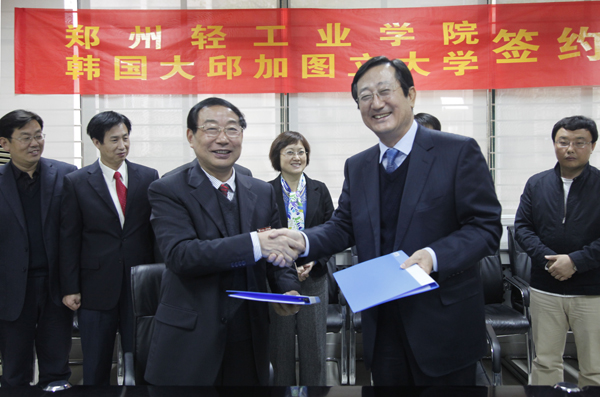 11月15日,韩国大邱加图立大学校长苏秉昱一行4人来我校访问,并正式签订了两校合作协议。