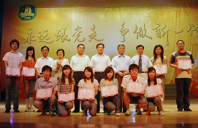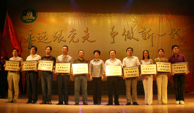 河南省大学生科技文化艺术节由省委宣传部、省教育厅、团省委、省文化厅、省学联等单位于1988年共同创办,每两年举办一届。我校学生参加了历届科技文化艺术节,并取得了优异成绩,连续11届获得优秀组织奖。本届的主题为“永远跟党走、争做新一代”,先后组织开展了“校园书法、篆刻、摄影、美术作品评选”,校园器乐、歌手、街舞、主持人、短剧曲艺、舞蹈大赛等11项赛事。我校组织学生参加了本届大学生科技文化艺术节的全部活动,参赛师生顽强拼搏,取得了优异成绩,荣获一等奖12项,二、三等奖20余项。
