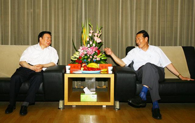 5月27日下午,中国轻工业联合会会长陈士能、副会长兼秘书长王世成在河南省轻工业协会会长陈清波等的陪同下莅临我校视察指导工作。校党委书记林世选,校长剧乂文,校党委副书记张胜利、张希凡,副校长龚毅等校领导在贵宾室与陈士能会长一行亲切会谈。