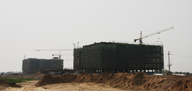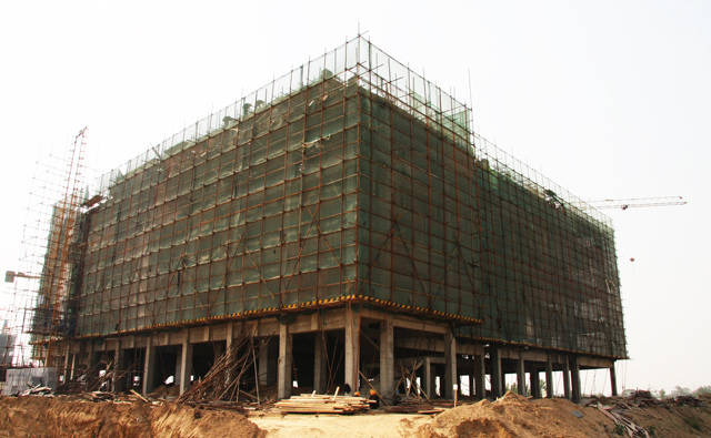 目前,新校区公共实验楼主体已结顶,电教中心楼也将于近日结顶,公共教学楼地下室已全部完成,一层主体已结顶。学生食堂四层主体已完成一半,计划5月20日四层主体结顶。学生宿舍计划5月20日一组团、二组团主体全部结顶。校内道路等基础设施的施工企业已进场,正在积极准备施工。此外,新校区大门及主路口设计等招标工作正在有序开展,校园网络系统和广播系统正加紧建设。食堂玻璃幕墙安装,外墙外保温系统安装,新校区景观设计,家具及设备的购置等工作也将在近期内进行。