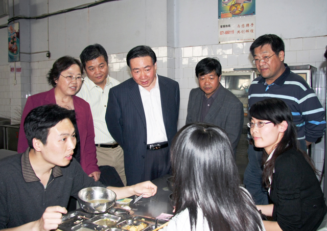 林世选书记非常关心学生的生活状况,检查过程中不断与学生亲切交流,详细查看饭菜质量、花色品种、标价、份量等情况。就餐的同学普遍反映学校食堂的饭菜价格比较稳定、饭菜品种较多,对在食堂就餐比较满意。
