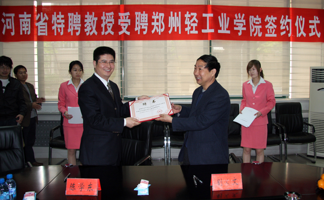 随后,陈学东教授发表了热情洋溢的感言,他对河南省教育厅高教处和郑州轻工业学院聘任他为机械设计及理论学科省级特聘教授表示感谢,并表示一定不负众望,圆满完成《河南省特聘教授聘任合同》中的目标和任务。