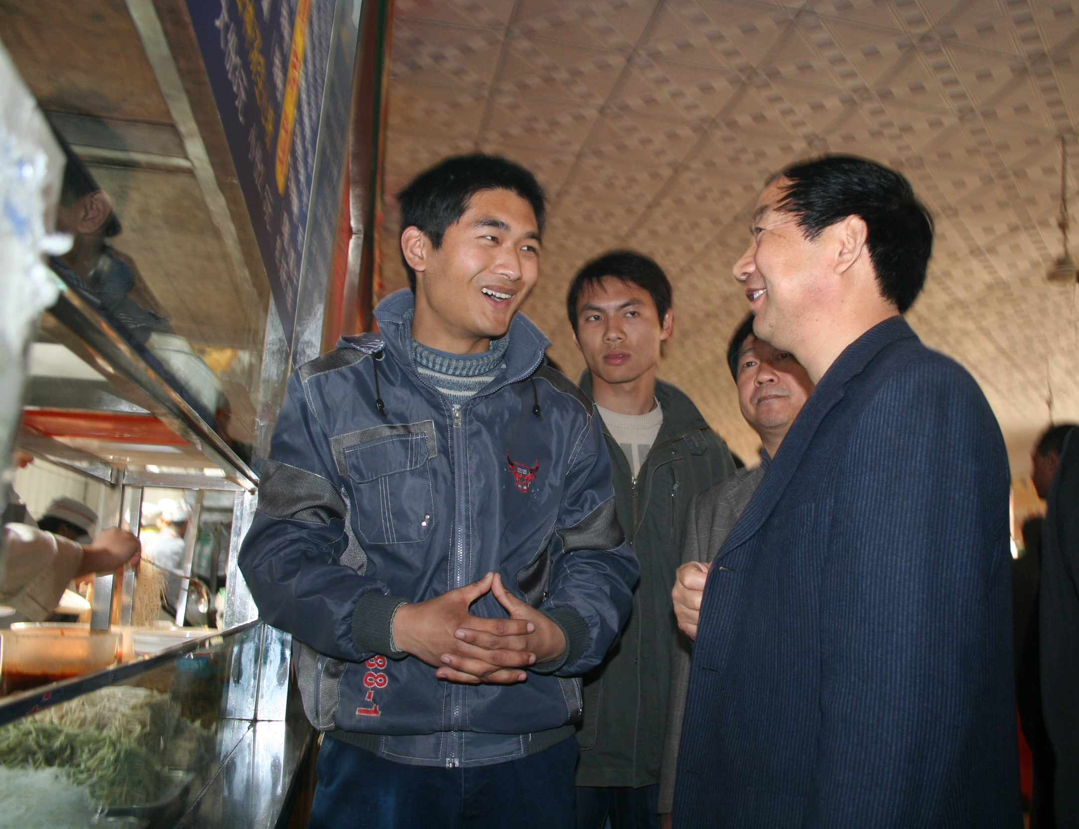 剧乂文校长对进一步做好食堂工作提出了明确要求:一定要认真落实好政府的有关政策,把政府补贴落实到位;同时要加强管理,降低成本,切实让学生感受到在学校食堂就餐的实惠;要继续以学生为本,不断提高服务水平。