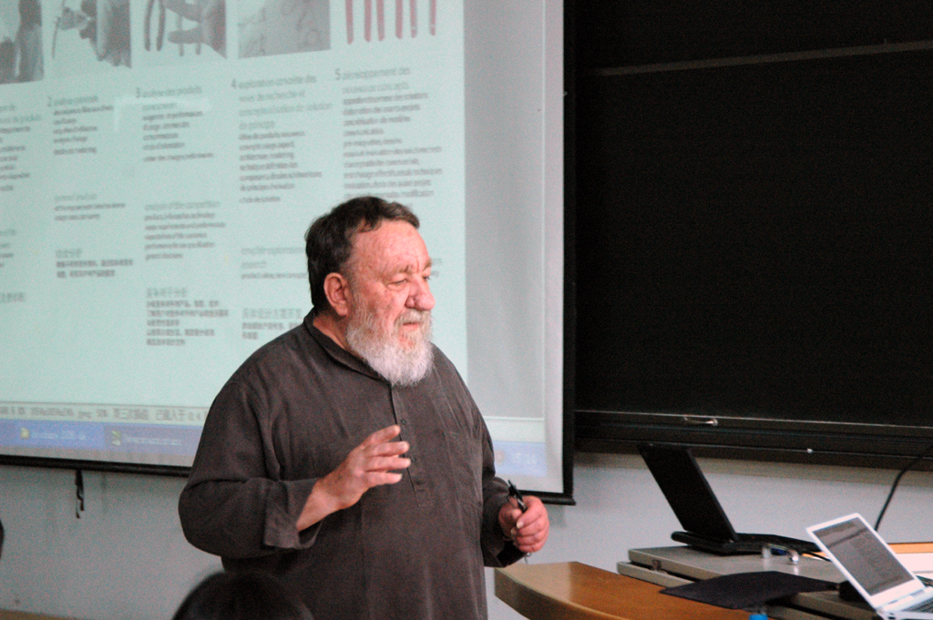 米歇尔・米罗先生从批判的角度入手,讲述了自己的设计经历和艺术实践,与在场师生探讨了设计创新的方法。讲座时,他还注重以自己的工作经验来激发同学们动手设计的自信心。聆听讲座的师生非常珍惜与大师级设计师面对面对话的机会,踊跃提问,积极思考,深入讨论,深感受益匪浅。