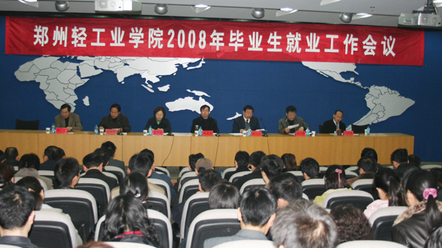校毕业生就业指导工作领导小组副组长、副校长陈江风传达了2008年全国普通高校毕业生就业工作会议的精神。校毕业生就业指导工作领导小组副组长、党委副书记张胜利总结了我校2007年毕业生就业工作取得的成绩,分析了2008年就业工作面临的形势,明确了2008年就业工作的目标任务,介绍了我校2008年毕业生就业工作的进展情况。教务处、机电工程学院、食品与生物工程学院、艺术设计学院四个单位的代表进行了典型发言,总结了本单位2007年就业工作的开展情况,交流了经验,提出了下一步促进学生充分就业的工作思路和措施。