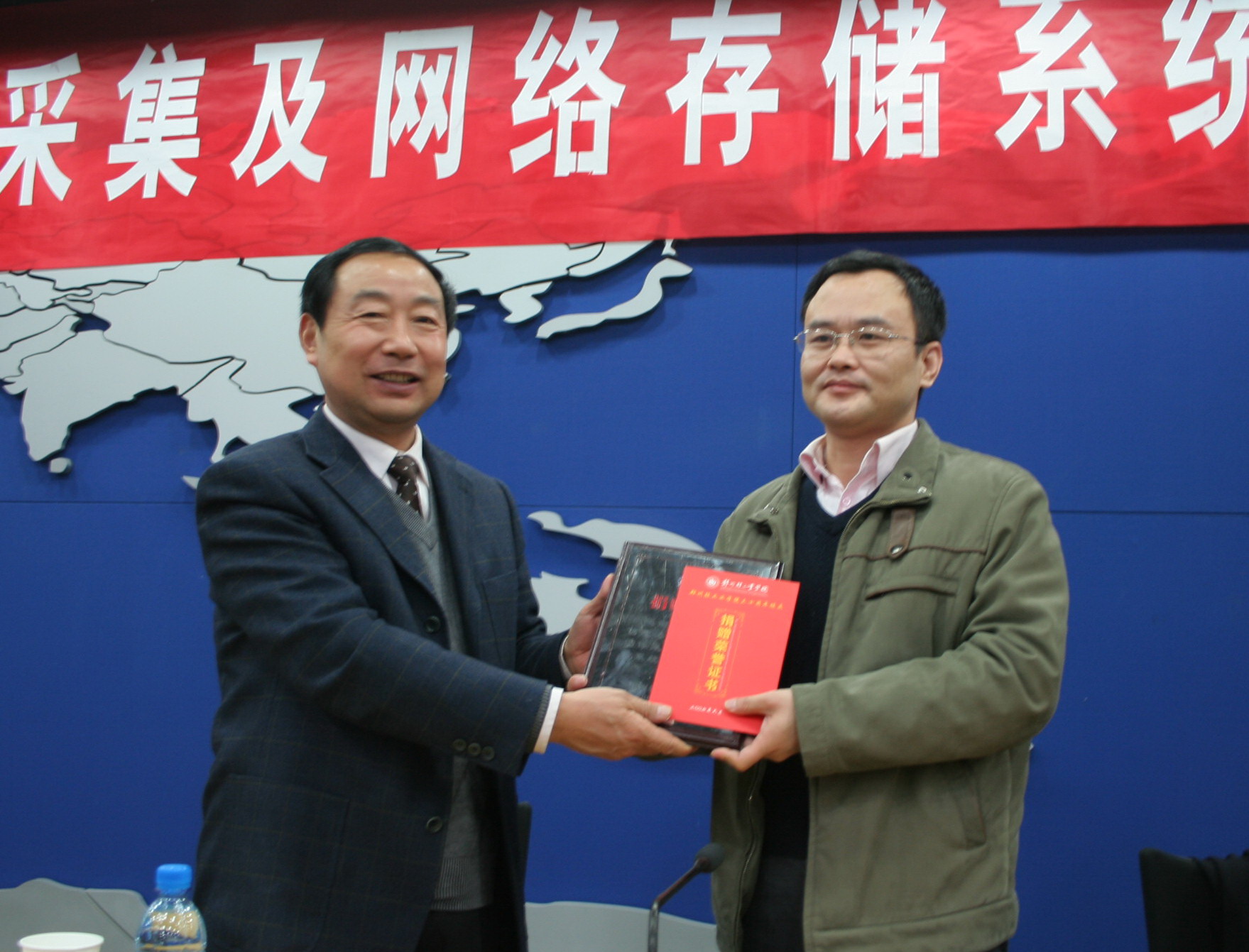 12月13日下午,河南省教育信息港向我校捐赠“数字图像采集及网络存储系统”暨启用仪式在图书馆报告厅隆重举行。