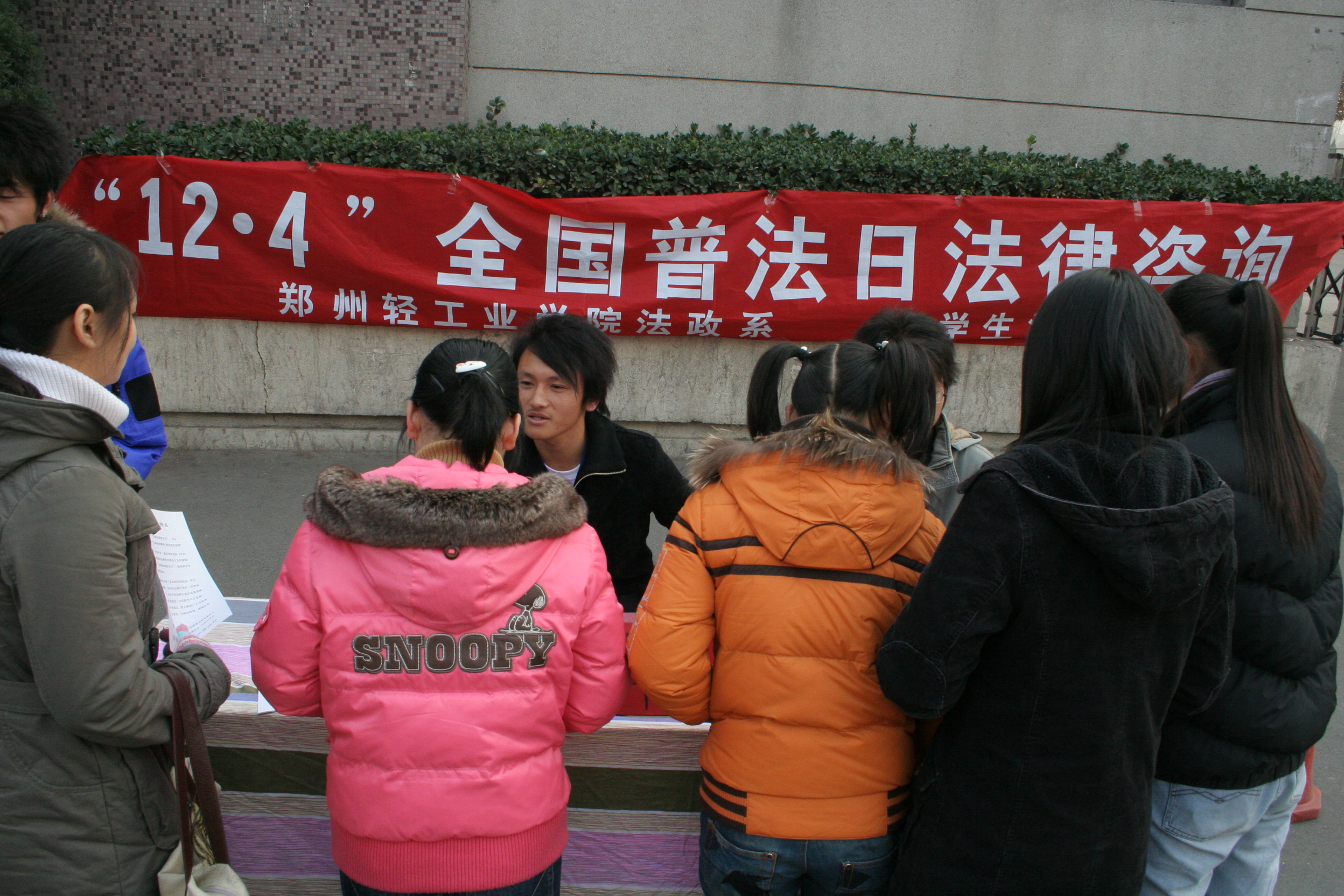 法制宣传教育作为社会主义法治建设的重要环节,已经成为推进依法治国进程,构建社会主义和谐社会的基础性工作。12月4日是全国法制宣传日,我校法政系组织开展了主题为“弘扬法律精神,构建和谐社会”的系列普法宣传活动。