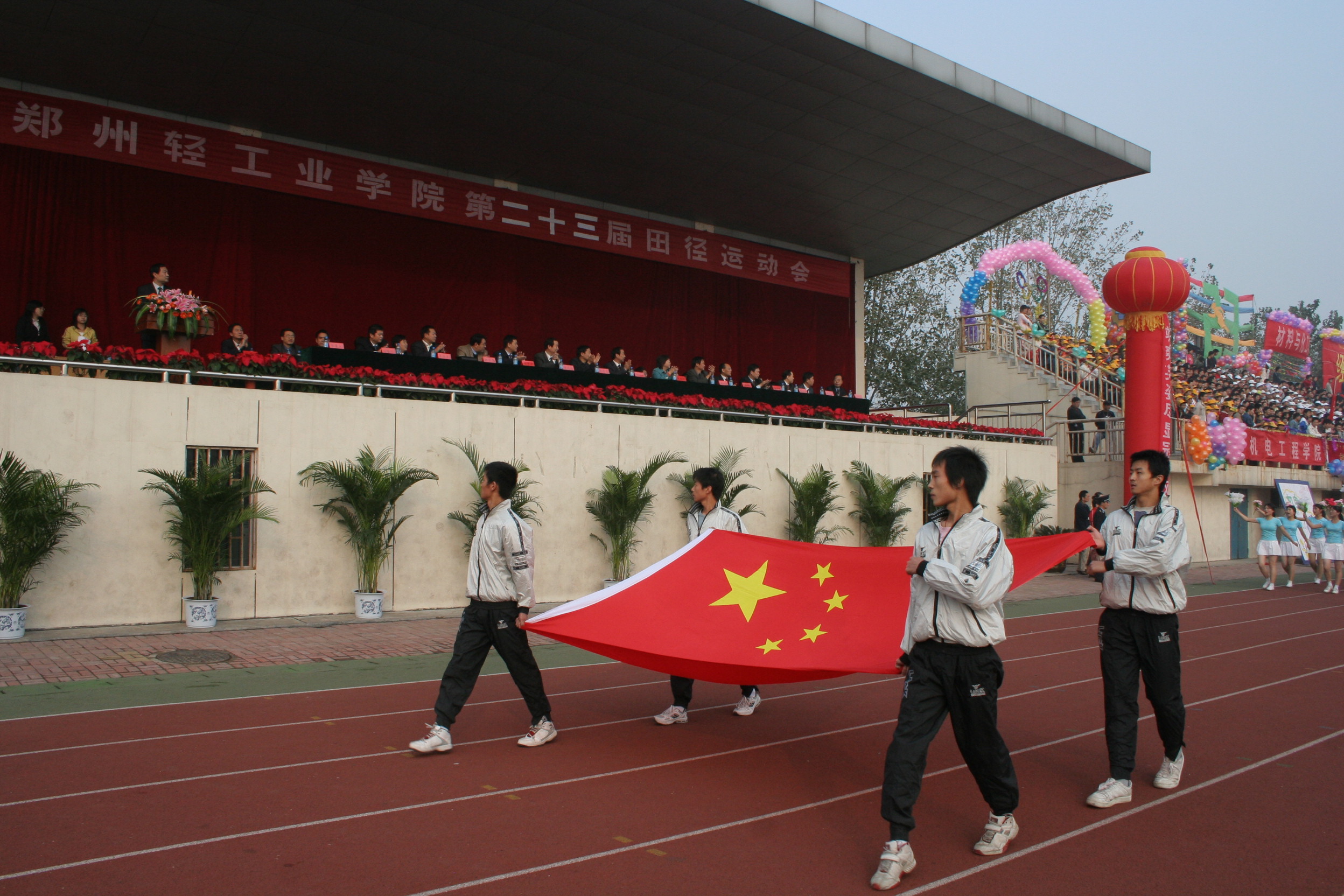 10月25日,我校第二十三届田径运动会开幕式在体育场举行。校领导剧乂文、张胜利、张希凡、黄遂清、陈江风、吕彦力、李世瑛出席开幕式并主席台就座。