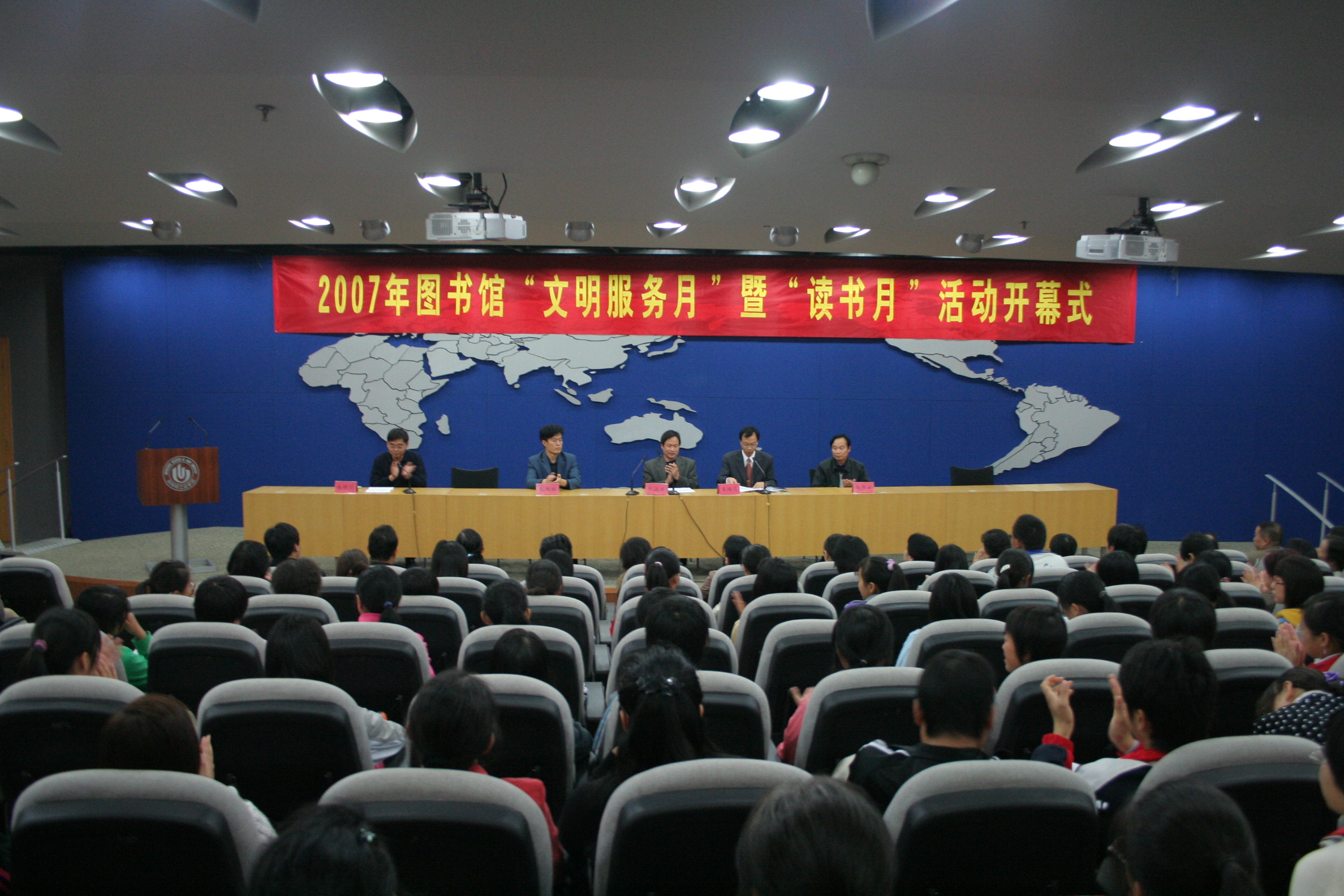 10月15日下午,以“加强资源建设,提升服务质量”为主题的2007年图书馆“文明服务月”暨“读书月”活动开幕式在图书馆一楼学术报告厅举行。副校长陈江风教授出席了开幕式,学校有关部门负责人、图书馆全体职工、各院系资料室管理员、读书协会会员和部分学生参加了开幕式。