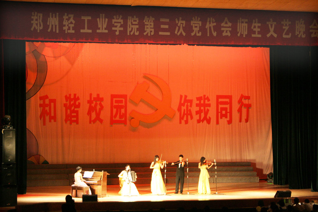 5月18日晚,由党委宣传部、校工会和校团委联合主办的郑州轻工业学院第三届党代会师生文艺晚会在学校大礼堂举行。学校领导、党代会代表和1000多名师生一起观看了演出。