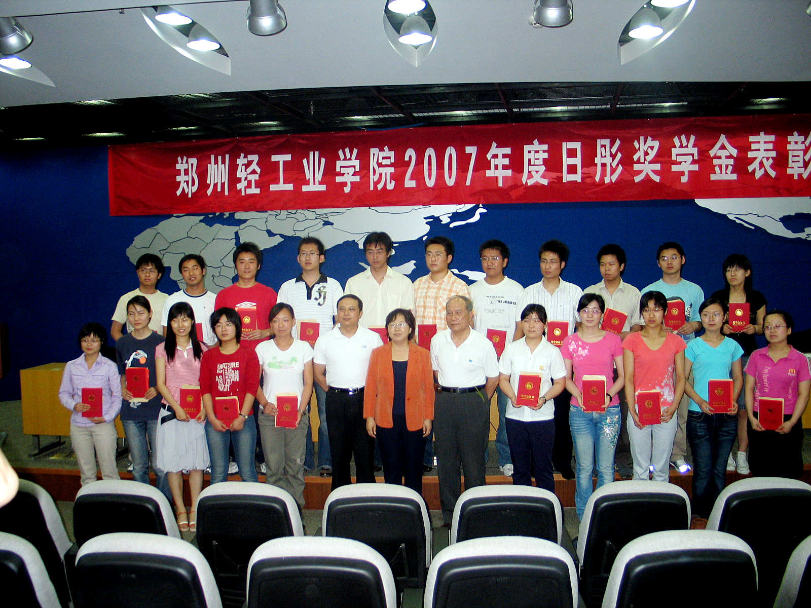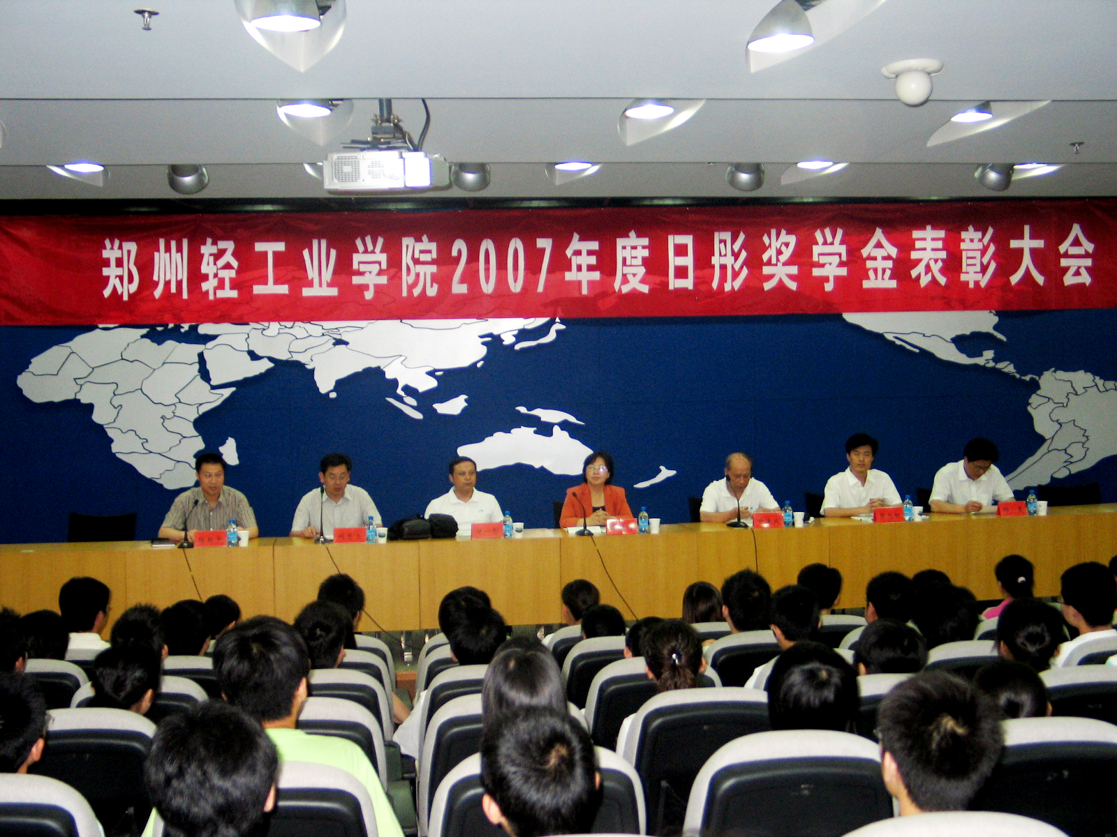 5月21日下午,我校隆重召开了郑州轻工业学院2007年度日彤奖学金表彰大会。校党委副书记张胜利教授,郑州日彤电子有限公司董事长甘康成、总经理甘一彤以及学校有关职能部门及相关院系负责人出席了会议,电气信息工程学院等5个院(系)受表彰的21名同学及200多名学生代表参加了表彰大会。