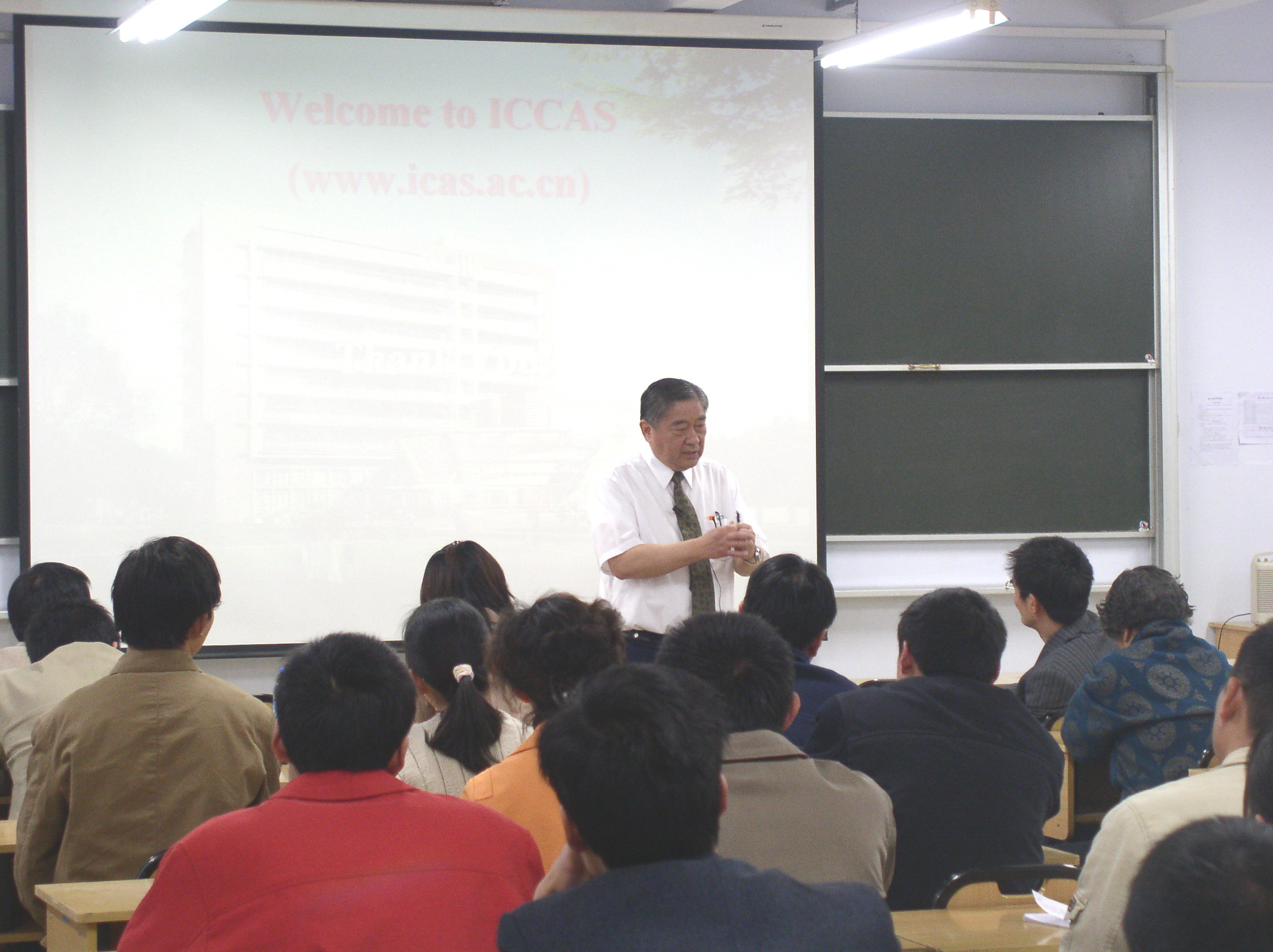 会见结束后,韩志超研究员为我校师生作了一场题为“聚烯烃合金应用的机遇与挑战”的学术报告。在报告中,他介绍了目前聚烯烃在国民经济发展中的重要地位,并针对聚烯烃在世界和中国大陆范围内的发展情况,以及我国聚烯烃被外国专利所屏蔽的问题,结合其课题组所做的科研工作,做了精彩的讲演。他还就如何提出科研课题与解决问题的科研思路向师生们介绍了经验。