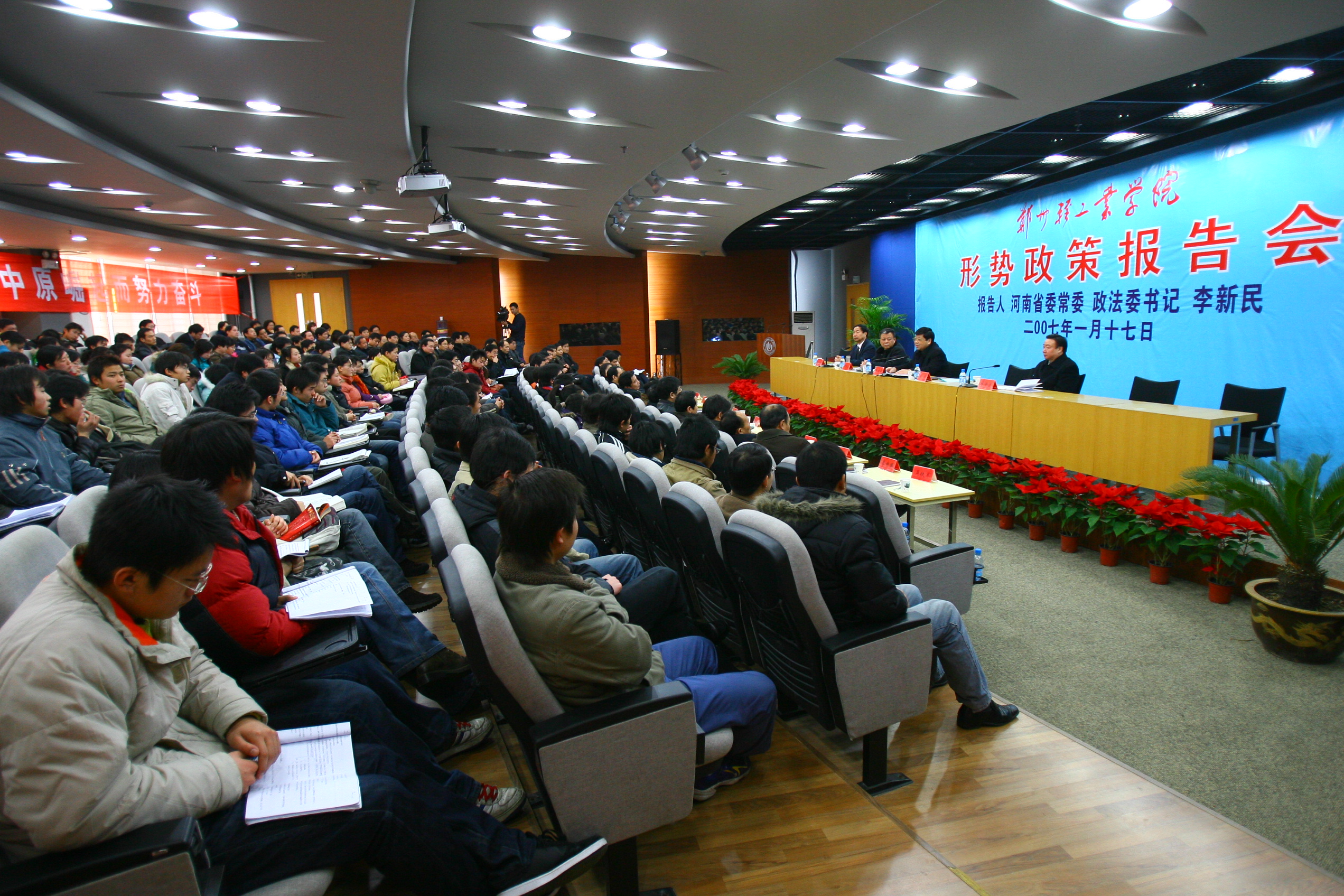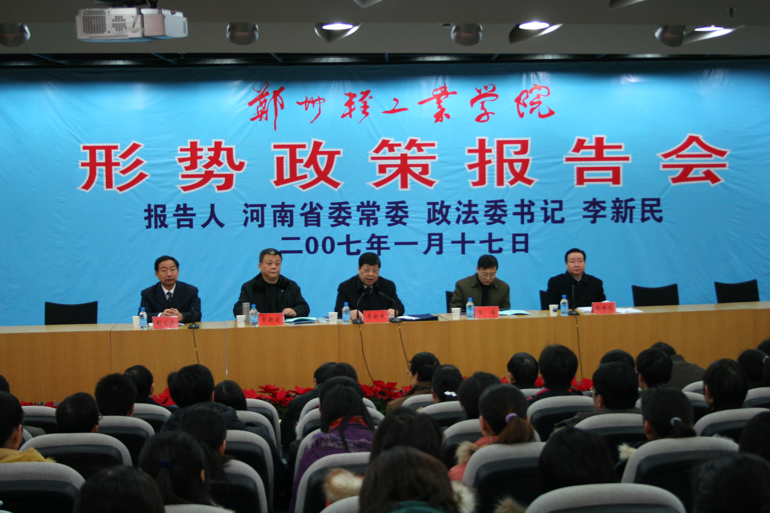 1月17日上午,河南省委常委、政法委书记李新民莅临我校,为师生作了一场精彩的形势政策报告。