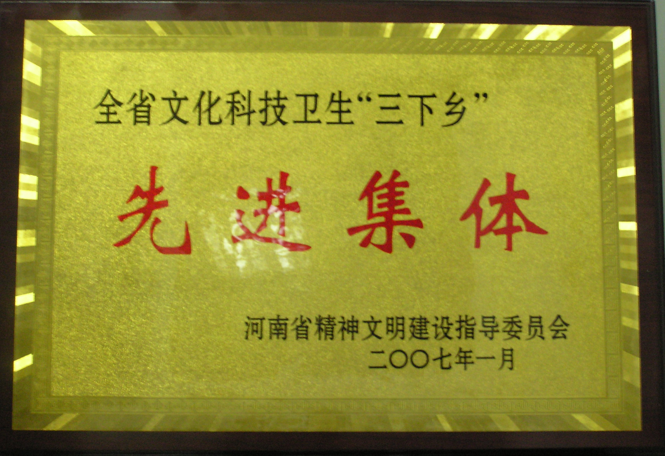 1月8日上午,全省文化科技卫生“三下乡”工作电视电话会议在郑州网通大楼会议室召开,对近年来全省“三下乡”工作进行了总结表彰,我校被河南省精神文明建设指导委员会授予“全省文化科技卫生‘三下乡’先进集体”荣誉称号(全省高校唯一)。中共河南省委常委、宣传部长、副省长孔玉芳同志出席了本次会议,并对我省今后的“三下乡”工作提出了明确要求。
