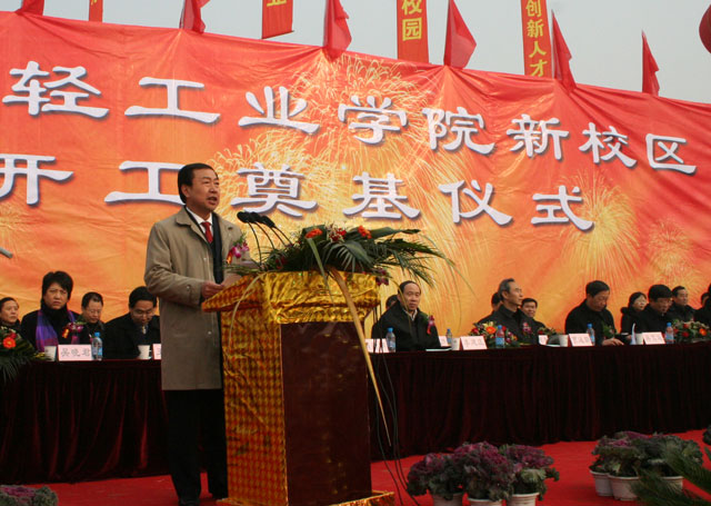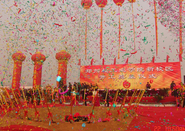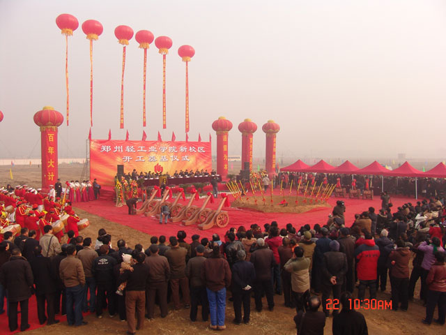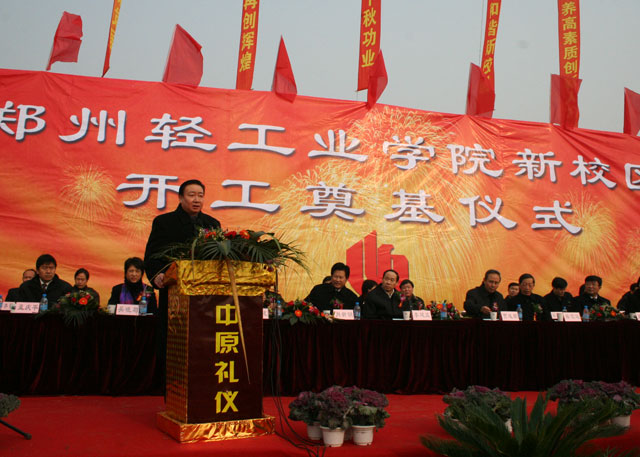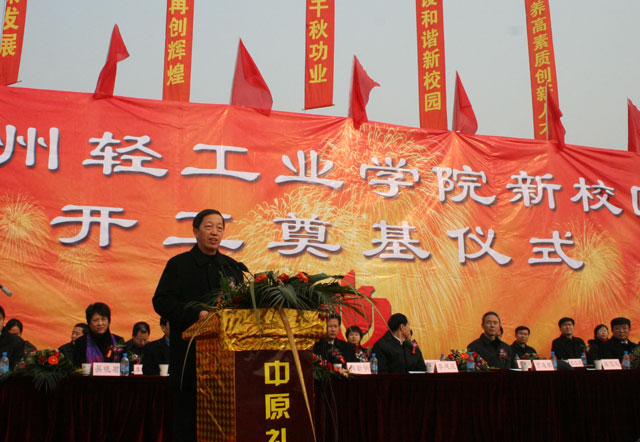 12月22日上午,郑州高新技术产业开发区鼓乐喧天,彩旗飘扬,河南省重点建设项目――郑州轻工业学院新校区建设奠基仪式在这里隆重举行。河南省人大常委会贾连朝副主任、河南省教育厅蒋笃运厅长、河南省人民政府李建庄副秘书长、河南省发展和改革委员会肖新明副主任、郑州市人民政府龚立群副市长及各兄弟院校、各有关单位代表出席了奠基仪式。河南省人民政府王菊梅副省长发来了贺信。