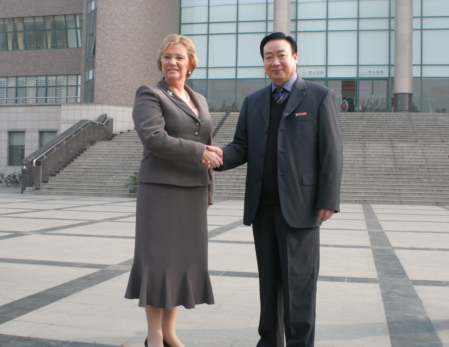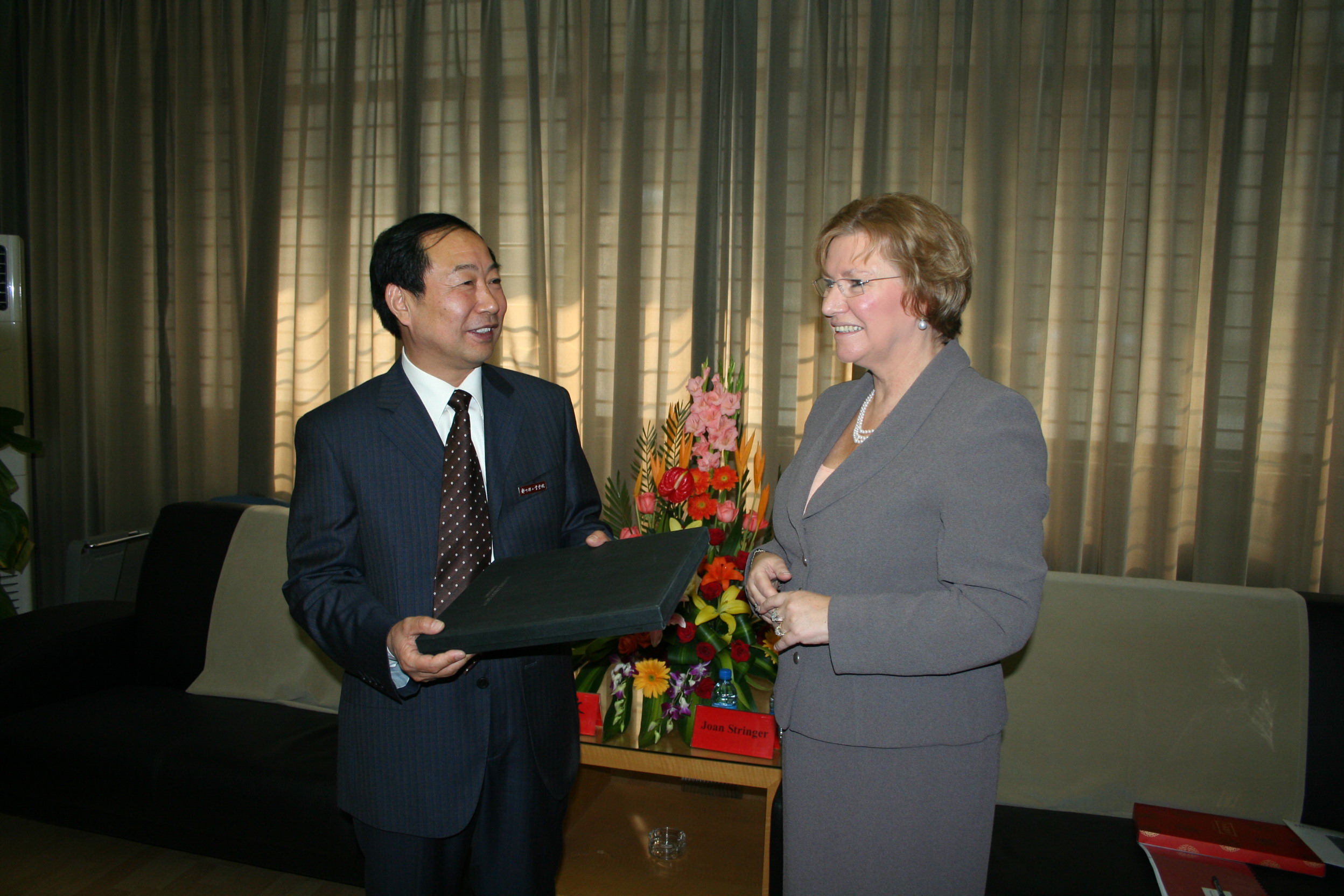 11月19―20日,英国龙比亚大学高级代表团一行七人对我校进行了访问。此次来访的代表团成员有:龙比亚大学校长Joan Stringer教授,主管国际合作副校长Peter Easy 教授,龙比亚大学国际战略及运营院长、国际学院院长Jack Worden教授,龙比亚大学中国办公室主任黄威先生,副主任李红女士,龙比亚大学国际办公室国际官员Ellen Cui女士以及校长的先生Roelof Marinus Mali。