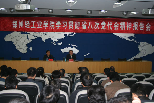 林世选书记强调指出,要把学习贯彻省第八次党代会精神作为当前和今后一个时期的一项重要政治任务,组织广大干部认真学习、广泛宣传,通过学习进一步提高认识、统一思想;把贯彻落实大会精神与促进学校改革发展结合起来,加快建设发展的步伐;以科学发展观为指导,加快建设和谐校园,努力为实现中原崛起多作贡献;加强党的建设,为学校发展提供坚强的政治保证,团结和带领广大师生为把我校建设成为一所具有鲜明轻工特色的教学研究型大学而努力奋斗。