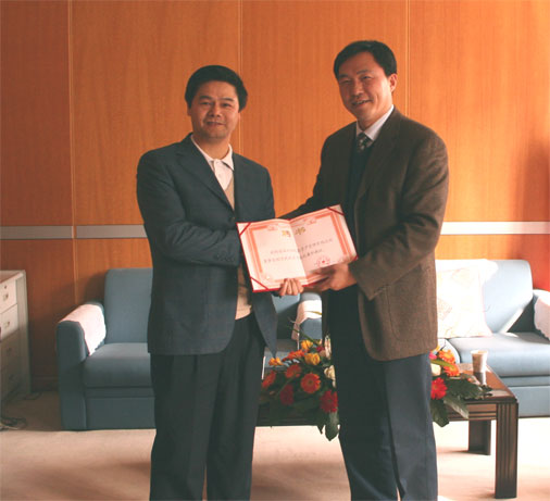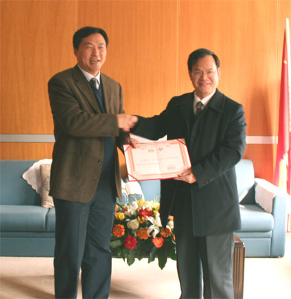 2006年3月3日下午,我校举行喻新安博士、闻卫武董事长受聘我校兼职教授仪式。党委书记、校长张亚伟教授,副校长吴铁军教授、龚毅教授及有关部门负责人参加了受聘仪式。