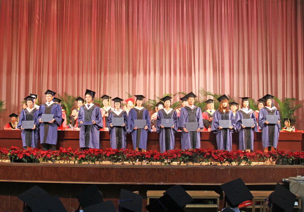 在欢快的乐曲声和与会师生热烈的掌声中,校领导先后为十佳毕业生、优秀毕业生代表及毕业研究生颁发学位证书及有关获奖证书。