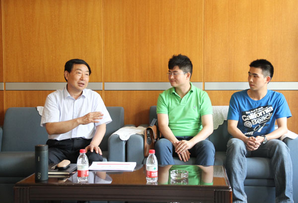 交谈中,邢星同学向学校领导汇报了自己求学和成长的经历和感悟,余洪海同学介绍了自己参加IF国际设计大赛的过程和获奖以后的感想。