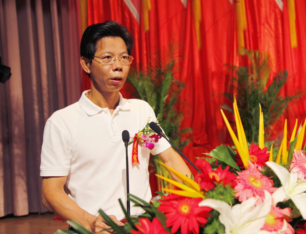 优秀校友代表、深圳喜德盛自行车有限公司董事长谭伟龙发言