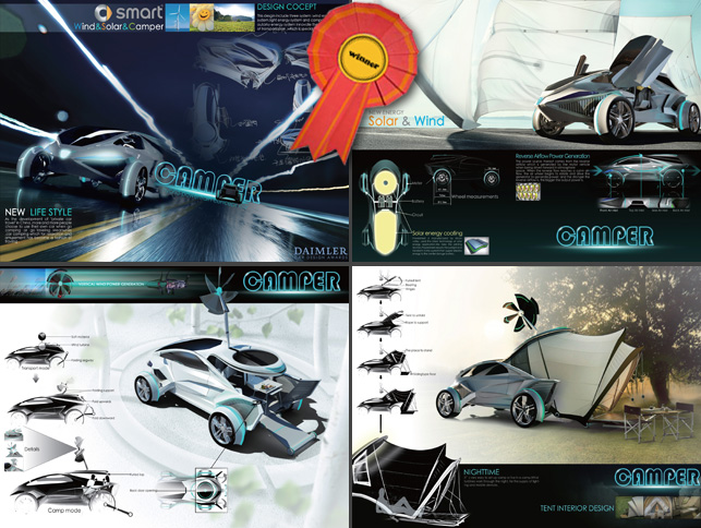 近日,2012 Car Design News 中国汽车设计大赛颁奖典礼在北京隆重举行,我校艺术设计学院任建军工业设计工作室学生方思远、李昭宇设计作品《CAMPER》荣获设计大赛分项第一名及最佳年度学生设计,并受邀参加了在北京举行的国际汽车会议,获全额资助进入瑞典于默尔大学(Umeå)设计学院学习。另一名学生刘沛华的《狮祥如意》也在4000余项参赛作品中成功入围决赛。