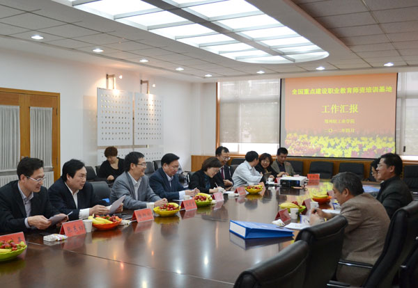 4月18日下午,教育部职教专家一行三人莅临我校,就我校申报“全国重点建设职业教育师资培训基地”事宜进行实地考察。来校的教育部职教专家分别是天津职业技术师范大学副校长卢双盈、同济大学职业技术教育学院党总支书记王继平、河北师范大学职业技术教育学院院长刁哲军。河南省教育厅职业与成人教育处副处长王明忠和我校党委书记林世选、副校长赵继红出席汇报会。会议由赵继红副校长主持。