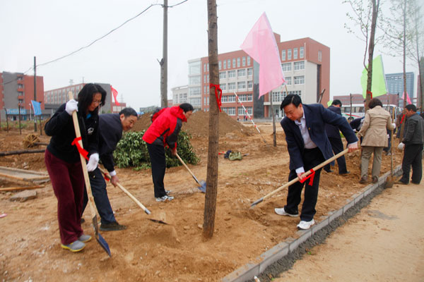 校领导及中层干部首先参加了校内主干道旁的植树活动。校领导们亲力亲为,挥锨、填土、围堰、浇水,在科学校区北大门附近种下了一排高大的景观树,为校园绿化美化工作增添了新动力。