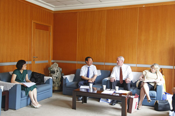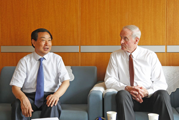 剧乂文书记代表学校对肯戴尔·布莱洽德校长及其夫人的来访表达了热烈欢迎,并就中美教育体制、大学国际交流、大学在现代社会中的作用等话题与客人进行了探讨。他表示,中美高校之间的教育交流能够促进东西方文化的融合,有助于两国学生在世界政治经济舞台上发挥更重要的作用,因此非常赞同两校在更广泛的领域开展深层次合作。肯戴尔·布莱洽德校长首先感谢郑州轻工业学院的热情接待,并表示完全同意剧书记关于大学的社会作用和大学国际化的观点,希望两校间开展更加深入和广泛的合作。