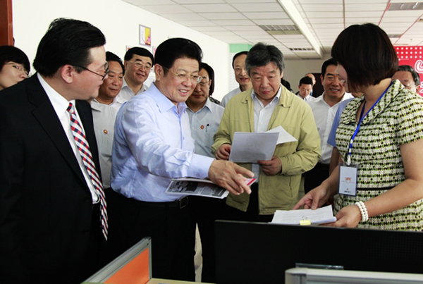 带着对小樱桃动漫集团发展的关心,带着对国家动漫产业发展基地(河南基地)建设的关注,4月14日上午,中共中央政治局常委、全国人大常委会委员长吴邦国深入河南小樱桃动漫集团调研考察工作。吴邦国委员长强调,河南有丰富的历史文化资源,你们要好好挖掘、充分利用,按照十七届六中全会要求,大力发展文化产业,多用人民群众喜闻乐见的文化表现形态,创作生产文化作品和产品,为促进文化事业大发展大繁荣作出更大的贡献。