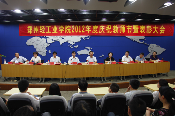 9月10日下午,我校2012年度庆祝教师节暨表彰大会在图书馆学术报告厅隆重召开。党委书记、校长剧乂文,党委副书记张胜利、窦效民,副校长龚毅、陈江风、吕彦力、赵继红、安士伟,工会主席李世瑛出席会议。职能处室、教辅单位、附属单位科级以上干部,院(直属系、部)书记、院长(主任),河南省优秀教师,河南省教育系统优秀教师,2012年度从事教育工作满30年教职工,2010—2012学年度“三育人”先进集体、先进个人,2012年IF国际设计大赛全球第4名指导教师,第五届全国大学生机械创新设计大赛全国一等奖指导教师,第七届全国大学生“飞思卡尔杯”智能汽车竞赛全国二等奖指导教师,河南省教育系统教学技能竞赛一等奖获得者,全省高校辅导员职业技能竞赛一等奖获得者,以及在职教师代表、离退休教师代表和学生代表参加了会议。副校长赵继红主持会议。