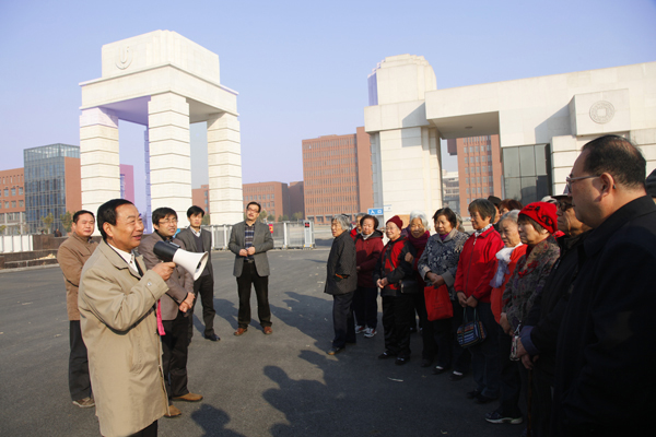 随后,学校领导及相关职能部门负责同志陪同50余位老同志兴致勃勃地参观了科学校区。基建处处长、新校区指挥部副指挥长王怀山陪同参观并向老同志们介绍了科学校区的建设历程和建设成就。