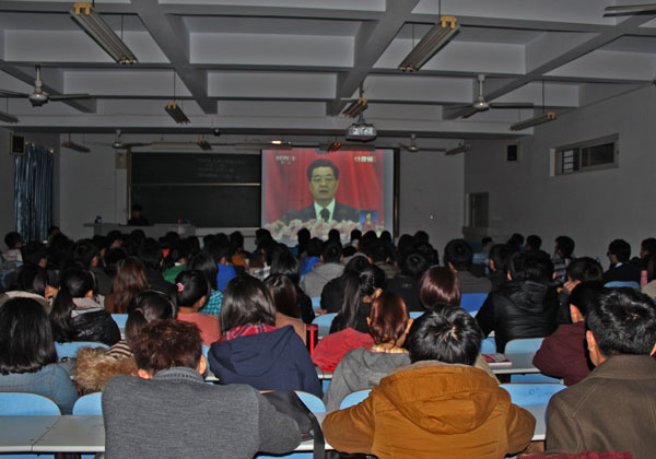 11月8日上午,中国共产党第十八次全国代表大会开幕式在北京人民大会堂隆重举行。为了及时、全面学习领会党的十八大精神,我校组织师生集中收看了大会开幕式直播,广大师生认真聆听了胡锦涛总书记代表中国共产党第十七届中央委员会所作的报告。