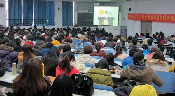 近日,中央美术学院教授肖勇在我校教三楼203教室为我校师生做了一场题为《视觉设计与实践》的学术报告。