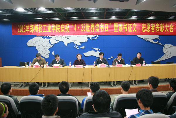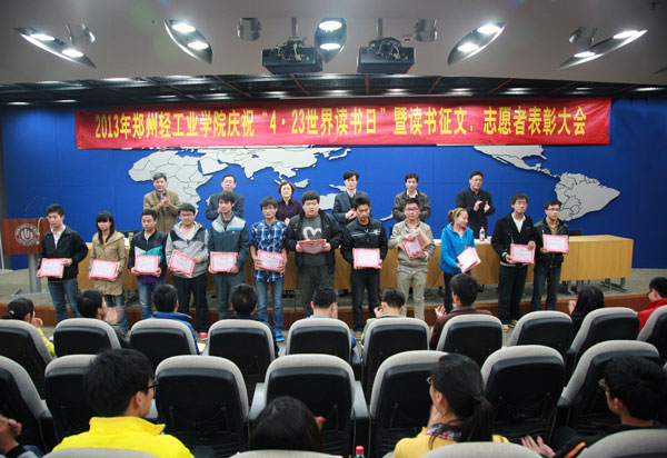 4月23日下午,我校2013年庆祝“4•23世界读书日”暨读书征文志愿者表彰大会在图书馆学术报告厅隆重举行。副校长赵继红出席大会并讲话。党委宣传部、学工部(处)、校团委、图书馆负责人及200余名师生参加了表彰大会。大会由图书馆馆长袁道强主持。