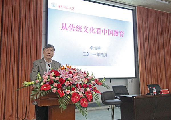 4月27日下午,中国工程院院士、华中科技大学校长李培根应邀为我校师生作了一场题为“从传统文化看中国教育”的报告会。东风校区讲演厅座无虚席,全体校领导、干部教师代表、研究生和本科生代表共约400余人在这里聆听了李培根院士的精彩报告。