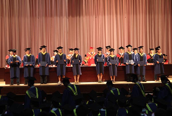 在欢快的乐曲声和现场师生热烈的掌声中,校领导先后为十佳毕业生、优秀毕业生代表颁发奖励证书,为获得学士学位的毕业生代表、获得硕士学位的毕业研究生授学位并颁发学位证书。