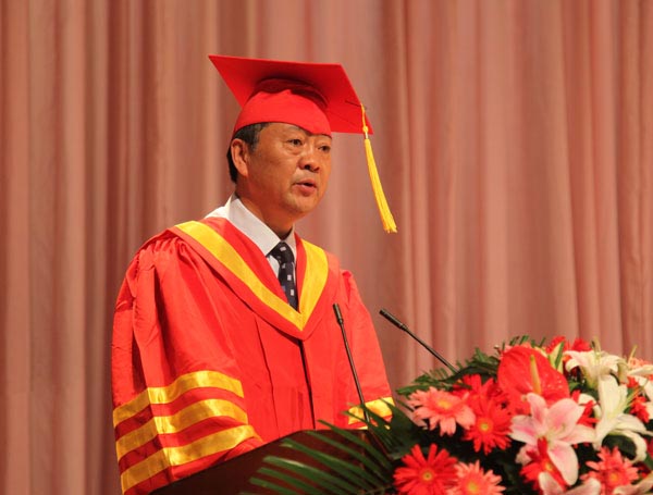校长石恒真在典礼上发表讲话。他代表学校和校学位评定委员会向所有圆满完成学业的同学表示最热烈的祝贺,并由衷感谢同学们为学校建设发展所做的贡献。他表示,同学们在校期间,正是学校办学规模迅速扩大,各项事业快速发展的时期,学校前进的每一个足迹都留下了你们拼搏进取的印记。
