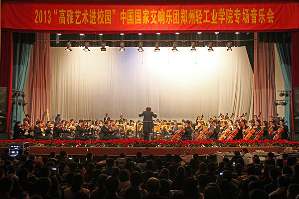 11月14日晚,中国国家交响乐团郑州轻院专场音乐会在东风校区大礼堂圆满举行,本场音乐会属教育部、文化部、财政部联合主办的“高雅艺术进校园”系列活动。特邀指挥家陈燮阳先生、国家交响乐团团长关峡先生、乐队首席刘云志先生带领国家交响乐团全体艺术家为轻院师生们带来了一场精彩绝伦的视听盛宴。党委副书记窦效民出席音乐会,并与千余名师生一起观看演出。