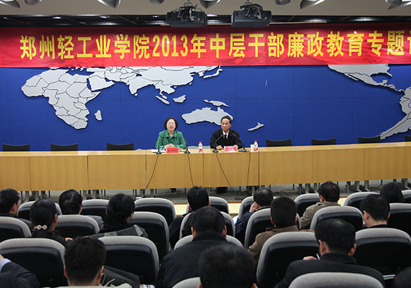 近日,省纪委宣教室主任于善法同志到我校为全体中层干部作党风廉政教育专题报告。报告会在图书馆学术报告厅举行,党委副书记、纪委书记张胜利主持报告会。