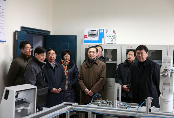 座谈会前,张大良司长还在校领导剧乂文、石恒真、龚毅、陈江风的陪同下考察了我校的GE实验室、河南省信息化电器重点实验室、热能实验室、CNC加工中心和陶玻实验室等教学科研平台。