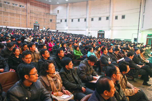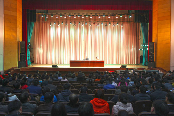 3月12日下午,党委书记剧乂文在东风校区大礼堂为师生党员上了一堂专题党课,党课辅导报告的题目是《牢固树立群众观点 自觉践行群众路线》。此次党课是我校正在开展的党的群众路线教育实践活动的重要内容,全体学校领导、全校中层党员干部、全校教职工党员、机关全体人员和部分学生党员参加了党课学习,进一步加深了对党的群众路线丰富内涵和重大意义的理解认识。党委副书记张胜利主持党课报告会。