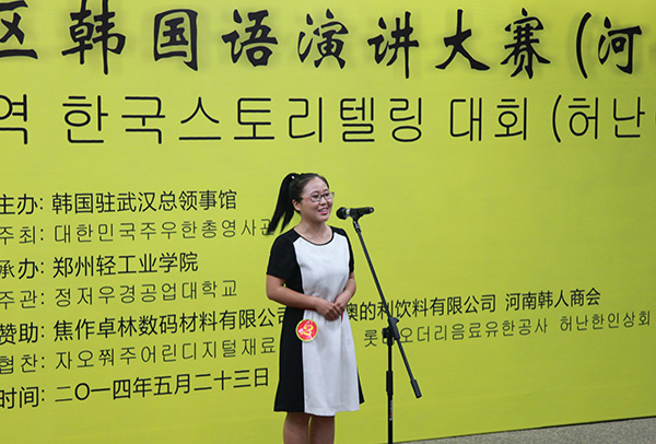 5月23日,2014华中地区韩国语演讲大赛(河南赛区)在我校东风校区图书馆学术报告厅成功举行。比赛由韩国驻武汉总领事馆主办、我校承办,来自郑州大学、华北水利水电大学及我校的共20名选手参加了比赛。