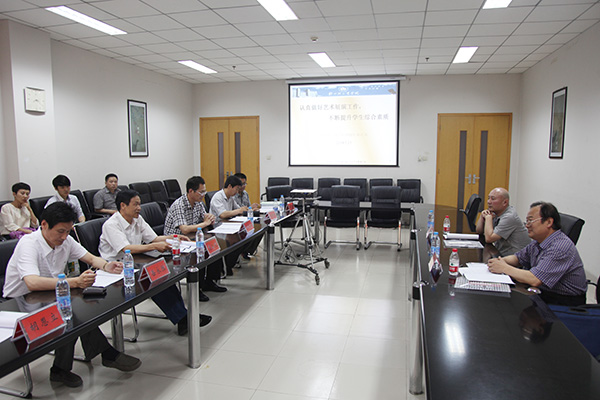 汇报会结束后,督导组专家在陈江风副校长和相关部门负责人的陪同下参观了我校艺术设计学院2014届本科毕业设计作品展,参观了艺术教育中心主办的2014大学生摄影、绘画作品展,观看了我校部分艺术展演节目,并对节目作了精彩点评和具体指导。