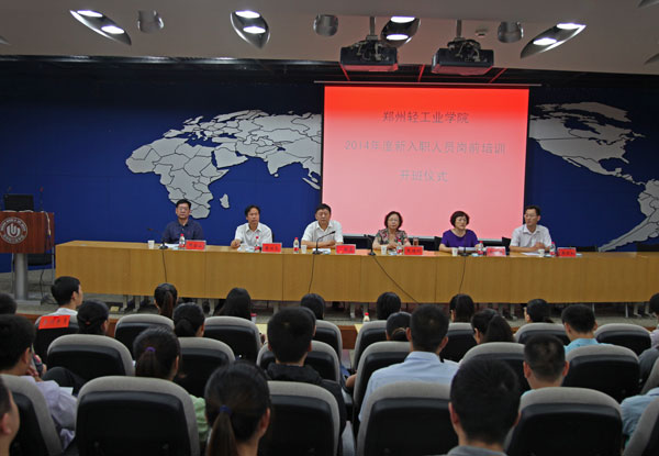 26日上午,培训班在图书馆学术报告厅举行了开班仪式。校领导石恒真、张胜利、陈江风出席开班仪式,副校长赵继红主持仪式。陈江风副校长亲切致辞,代表校党委、校行政和3万余名师生员工对新教师加入郑州轻工业学院表示热烈欢迎与诚挚祝贺,向新教师介绍了我校的发展历程和建校37年来取得的巨大成就。他希望新教师充分认识岗前培训的重要性,严格要求,严明纪律,虚心学习,不断提高。随后,人事处处长师宝山对新教师岗前培训工作安排进行了说明。