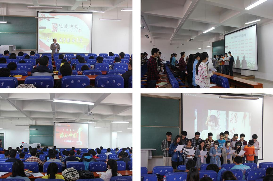 本次活动分为“唱一首歌曲”、“诵一段经典”、“看一个短片”、“听一场报告”、“省一个深思”、“撰写一些心得留言”等环节。活动在齐诵《弟子规》中拉开了帷幕。“凡是人,皆须爱,天同覆,地同载”,让同学们深刻地认识到遵德守礼自古以来就是中华民族的传统美德,传承和发扬这种美德是每个人应尽的义务。