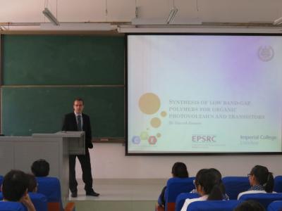 日前,应材料与化学工程学院邀请,瑞典查尔姆斯理工学院大卫·伊恩·詹姆斯(David Ian James)来我校进行学术交流,并为相关专业师生作了题为“有机窄带宽聚合物的合成及在有机太阳能电池和有机晶体管中的应用”的学术报告。 詹姆斯博士从有机窄带宽聚合物的应用前景出发,引出新型有机窄带宽聚合物设计合成研究的重要性,着重讲解了高性能有机窄带宽聚合物设计合成的原理,详细介绍了他所设计合成的系列聚合物材料及性能研究。在报告中,詹姆斯博士还特意讲述了自己科学研究过程中的一些小故事,增加了报告的趣味性,让师生充分了解了有机窄带宽聚合物合成的科学研究过程。 此次报告使与会师生深入了解有机窄带宽聚合物材料的热点、存在问题、发展方向、机遇与挑战,开阔了大家从事科学研究的视野。