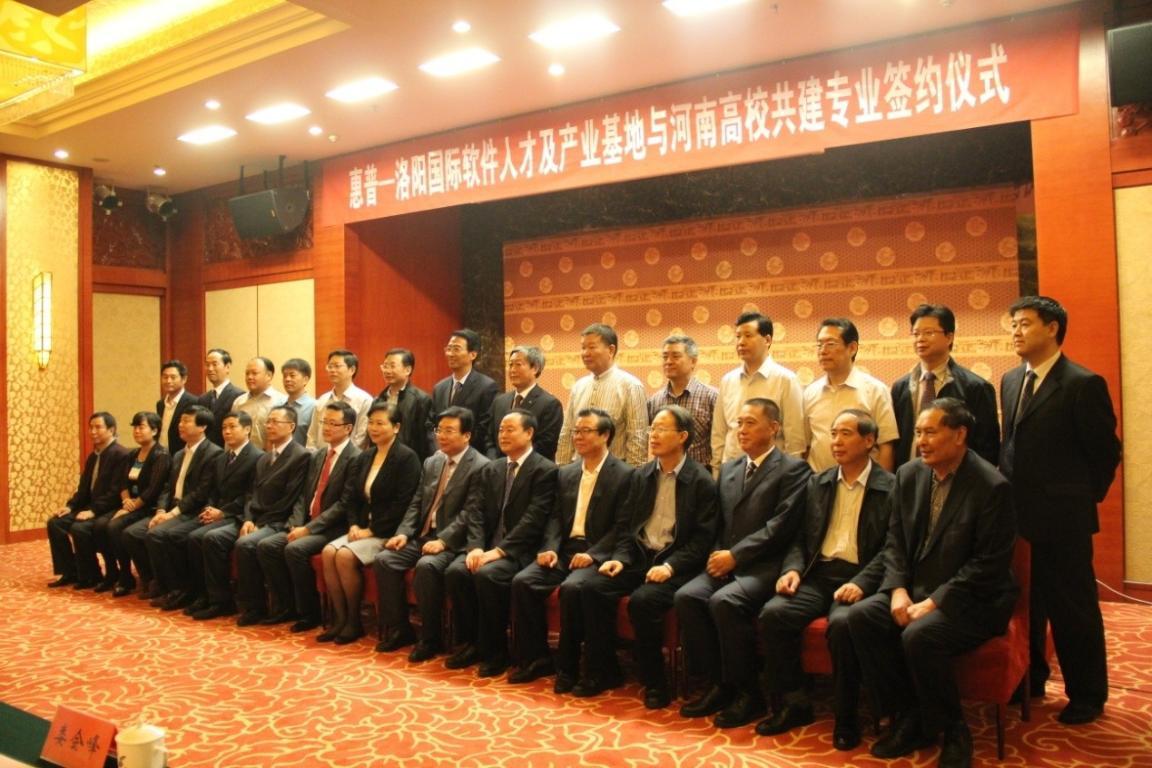 9月25日上午,惠普-洛阳国际软件人才及产业基地与包括我校在内的21所省内高校共建专业签约仪式在洛阳举行。按照协议,惠普-洛阳基地将与这21所高校共建软件开发、软件测试等计算机专业,并将在教师培训、实验室建设、区域协同创新、科研项目支持、产业融合课程开发等领域进行全面合作。
