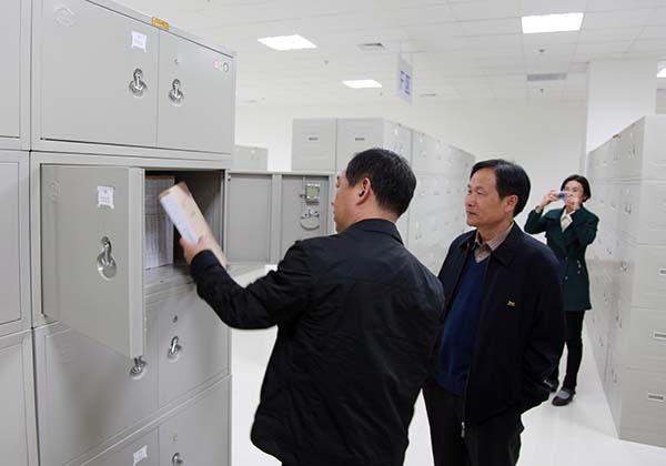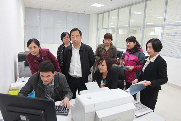 汇报会后,检查组分别对我校档案馆的软硬件建设、档案编目归档等情况进行了实地检查评估。检查组查看了我校党群、行政、教学、科研、基建、设备、会计等各门类档案的收集、整理、加工、著录情况,考察了档案库房及安保情况,观看了数字档案信息服务平台全文检索、调档利用的现场操作演示
